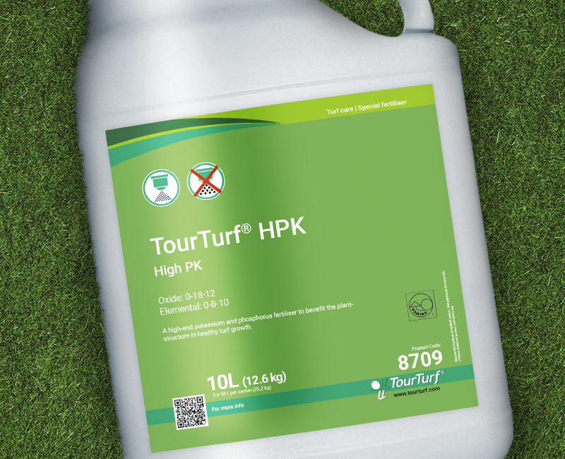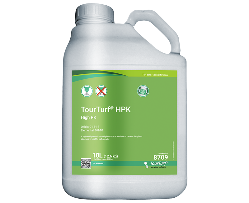 TourTurf® HPK High PK er en avanceret flydende gødning baseret på kalium og fosfor, tangekstrakt, huminsyrer og et aromatisk planteekstrakt. På grund af sin værdifulde fosfitformulering sælges TourTurf® HPK High PK i øjeblikket kun uden for Europa. TourTurf® HPK er en fremragende tankblandingspartner og er meget effektiv til at forebygge de almindeligt kendte græssygdomme.