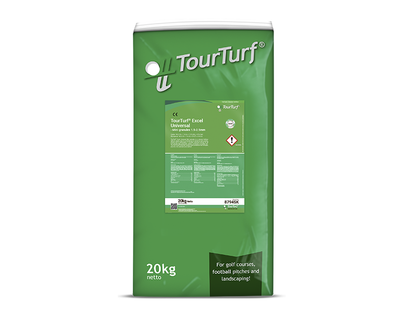 TourTurf® Excel Universal 10-5-16 is a mineral NPK-fertiliser with an organic base for universal use on all turf on golf courses, pitches and in landscaping. It is available as Mini and Maxi granular. It provides optimised growth for all turf, and the high potassium content contributes to healthy turf with strong cells.