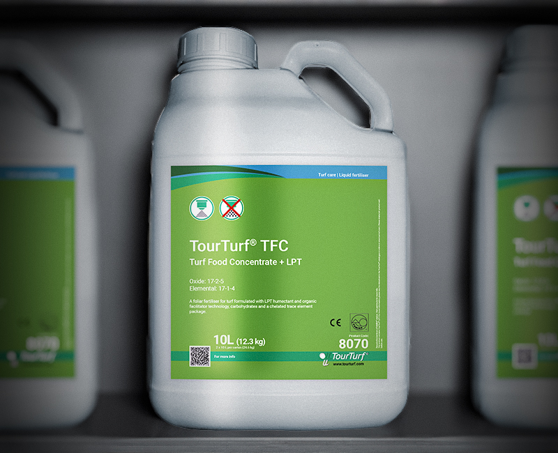TourTurf® TFC Slow Release 17-2-5 Turf Food Concentrate + LPT is a foliar fertiliser for turf designed for quick leaf uptake of nutrients under different environmental conditions. From both low soil temperatures to high air temperatures with high humidity.