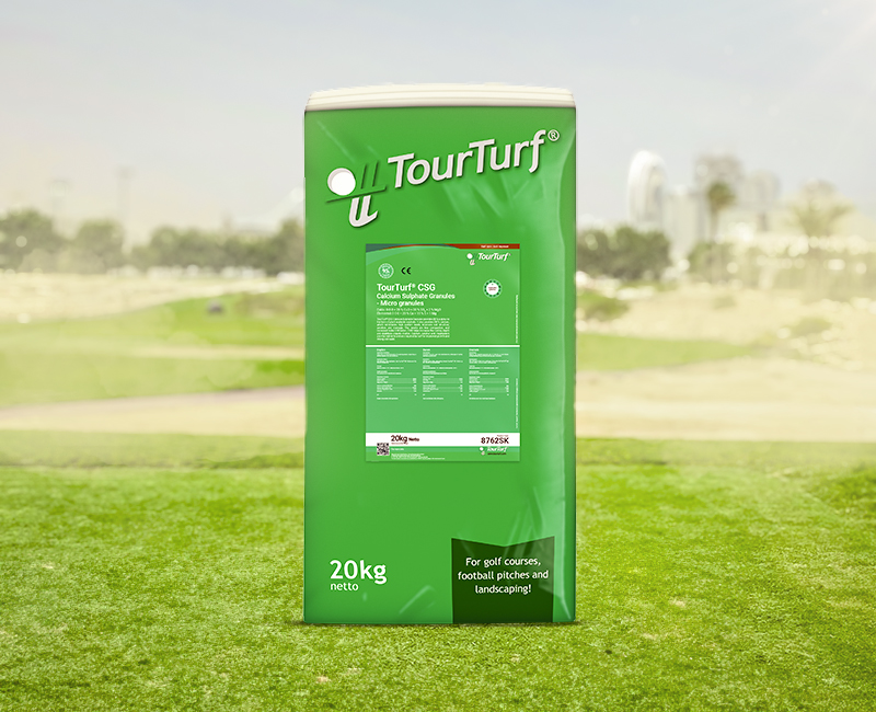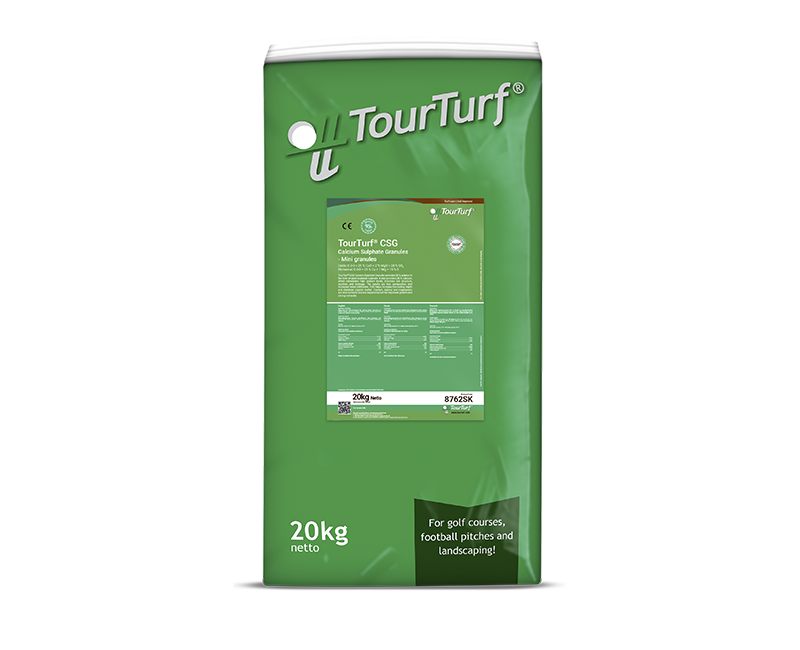TourTurf® CSG Calcium Sulphate Granules is a calcium fertiliser with sulphur. As calcium has a greater binding potential to soil particles than sodium, it can replace the sodium ions attached to soil particles. TourTurf® CSG is a finely ground, pure gypsum mini-granule. The granules rapidly dissolve into the soil profile when watered in and deliver a high level of readily available calcium, sulphur and magnesium to the soil. TourTurf® CSG can be used in a program to remove sodium and bicarbonates from the soil profile.